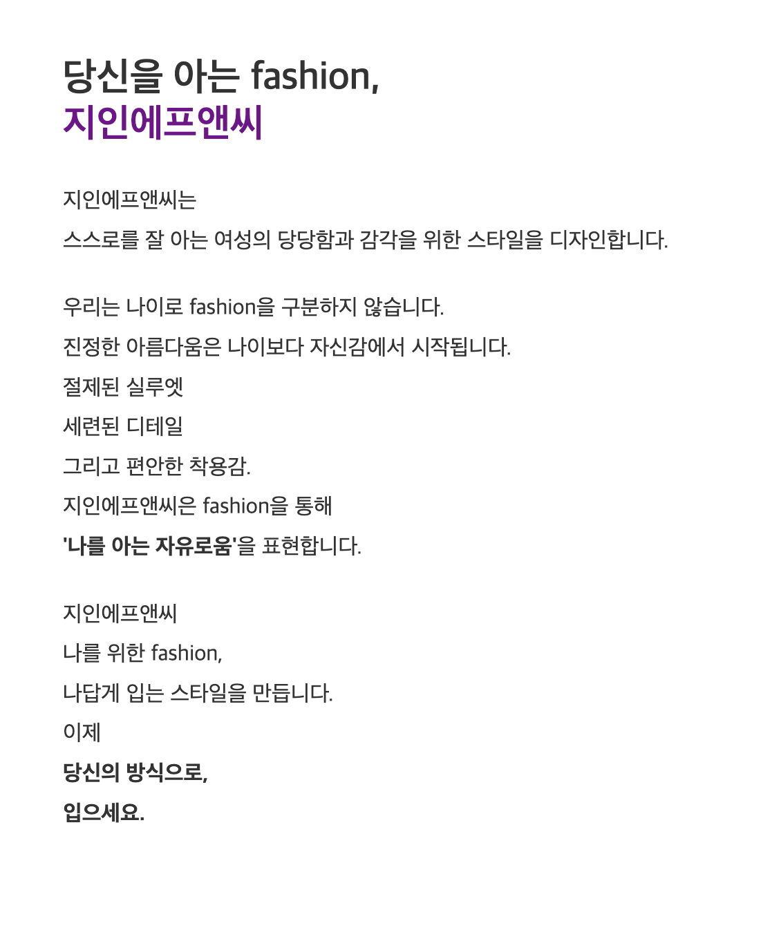 지인F&C는 옷을 통해 고객의 삶에
